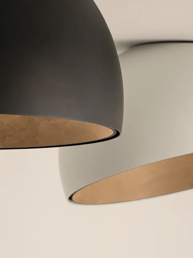 Duo Petra bietet eine allgemeine Umgebungsbeleuchtung, die ideal für ein minimalistisches und großzügiges Interieur ist. Speziell für Räume mit niedrigen Decken konzipiert, in denen eine Pendelleuchte nicht geeignet ist, strahlt ihr satinierter Diffusor ein sanftes, diffuses Licht nach unten ab.