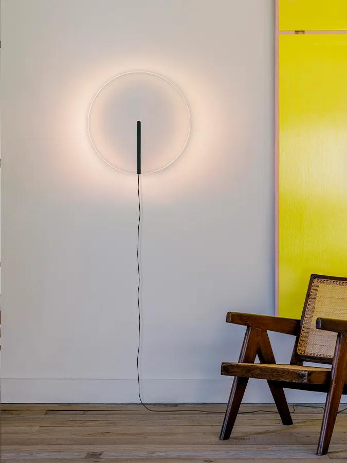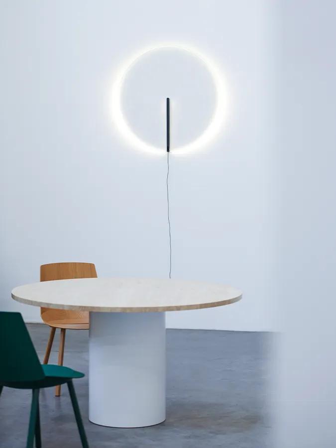 Cela produit une sorte d’effet magique, dans le même temps tout à fait fonctionnel. La grande transparence du verre fait qu’une fois la lampe éteinte, elle disparaît presque. Allumée, elle constitue une présence lumineuse fluide et magnétique.