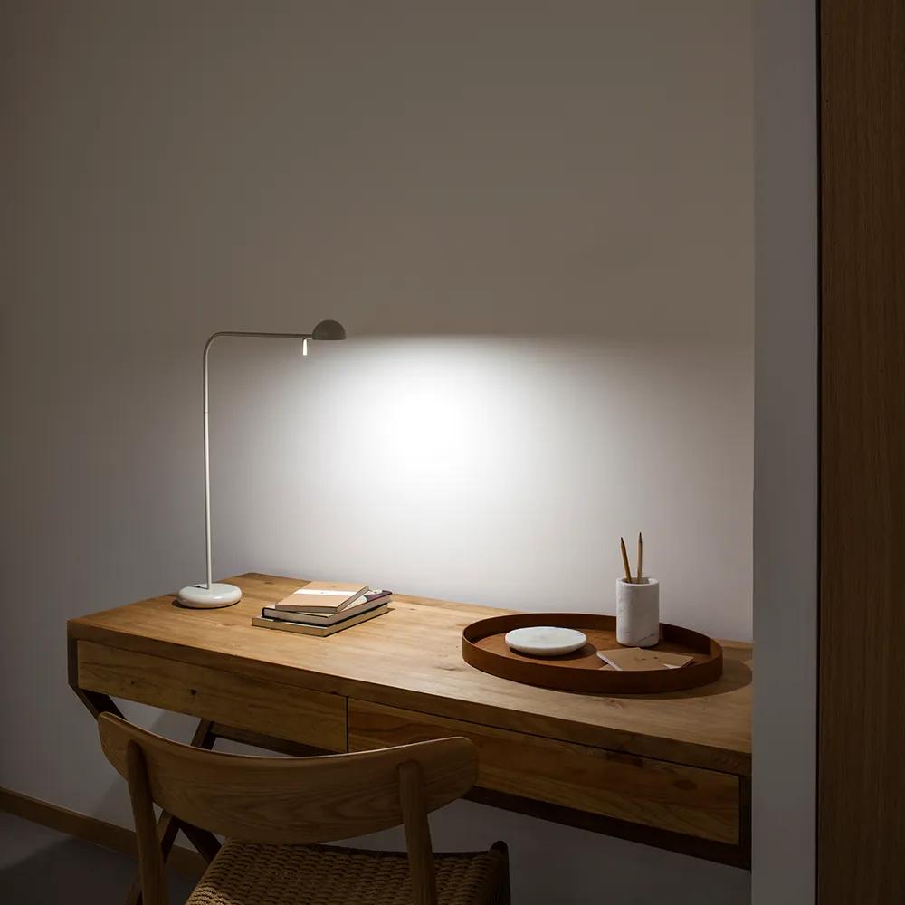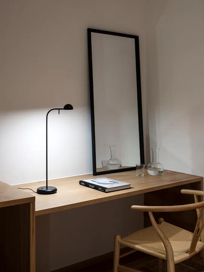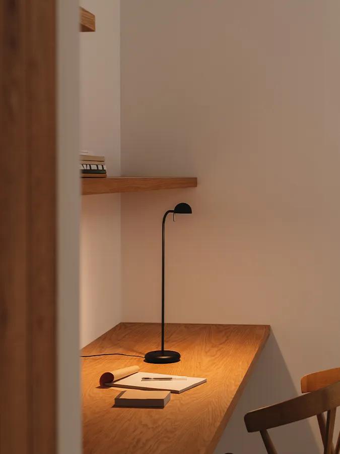 La collection Pin, en versions lampadaire et lampe de table, associe une silhouette élancée à un éclairage ponctuel et précis.