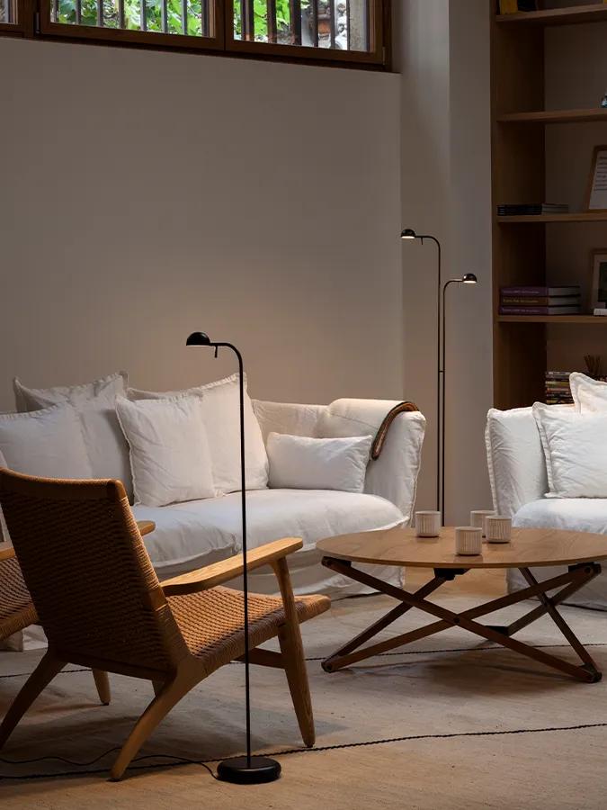 Les lampes de sol et de table Pin sont idéales pour les coins lecture ou les espaces intimes, et s'intègrent à toutes les ambiances, dans les intérieurs traditionnels ou plus contemporains.