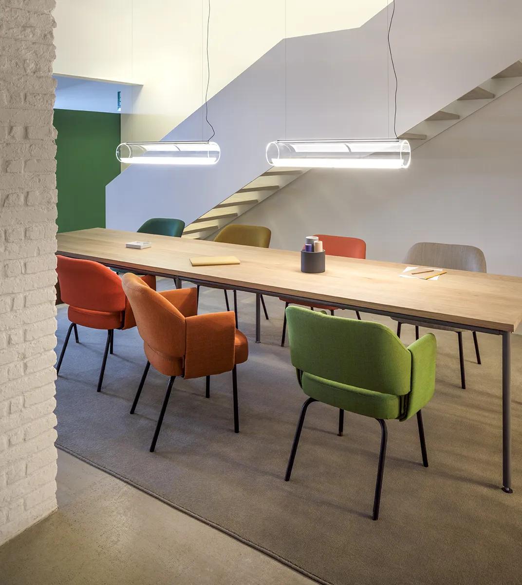 Conçue pour se distinguer dans l'architecture sans s'imposer, Guise est la solution idéale pour les passages, les tables ou les espaces à double hauteur.