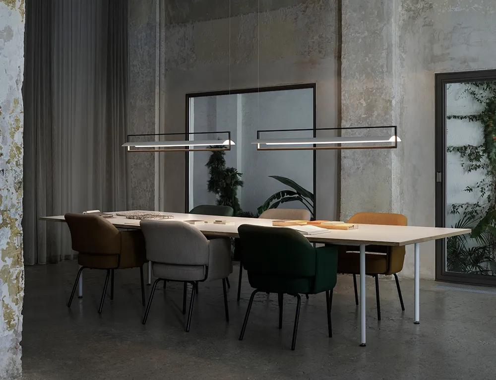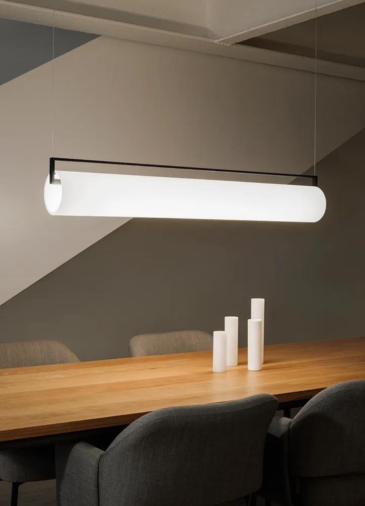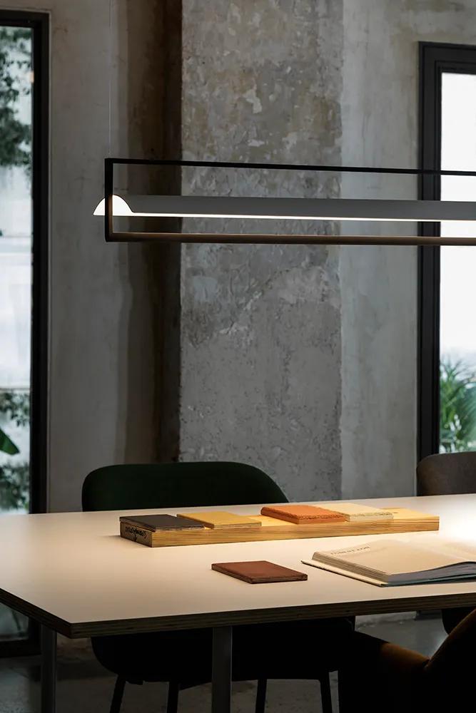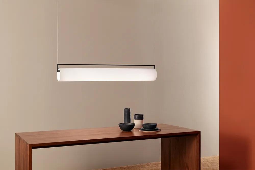 Le luminaire suspendu Kontorno transforme l’illumination en un élégant contour noir suspendu dans l’air.