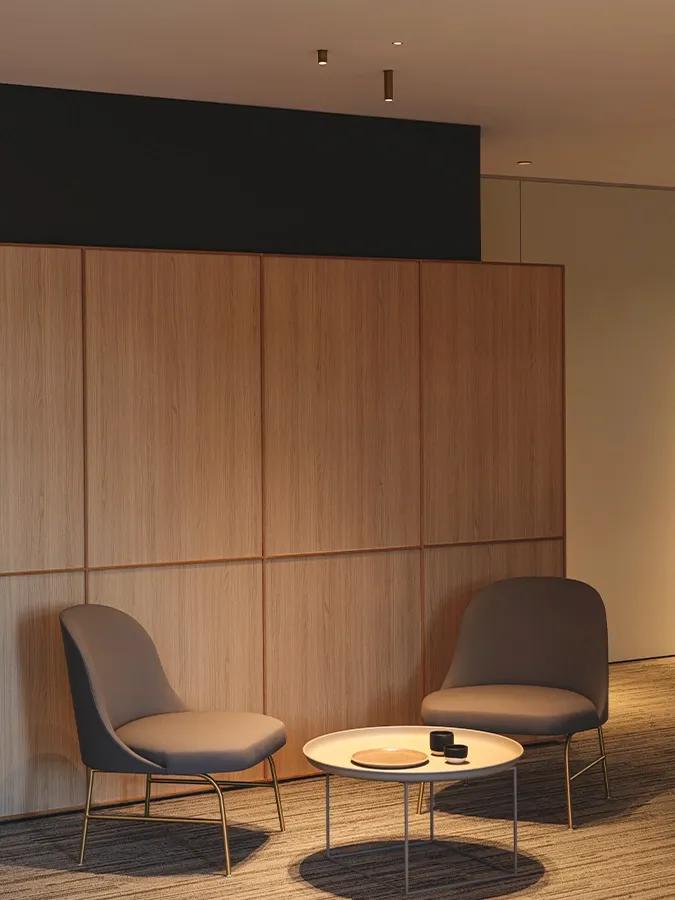 Bind Solo propose des spots d'accentuation et des luminaires zénithaux, délimitant les zones fonctionnelles et définissant les zones d'activités hybrides.