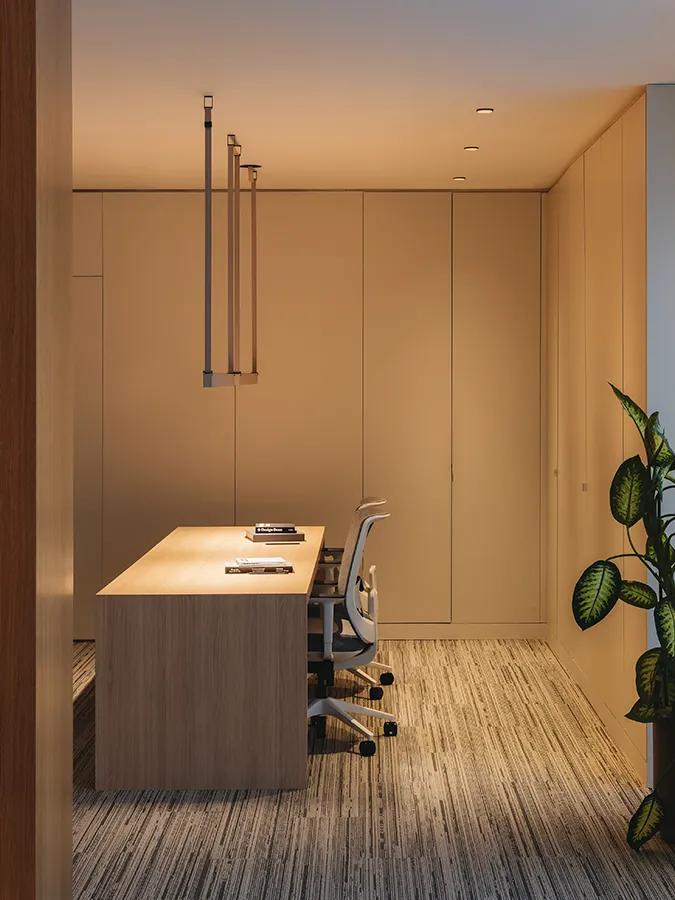 Grazie al suo controllo dinamico e alla regolazione della temperatura di colore LED, permette di creare atmosfere personalizzate e ricche di sfumature. Un complemento funzionale e curato, pensato per progetti di interior design che ricercano flessibilità e comfort visivo.