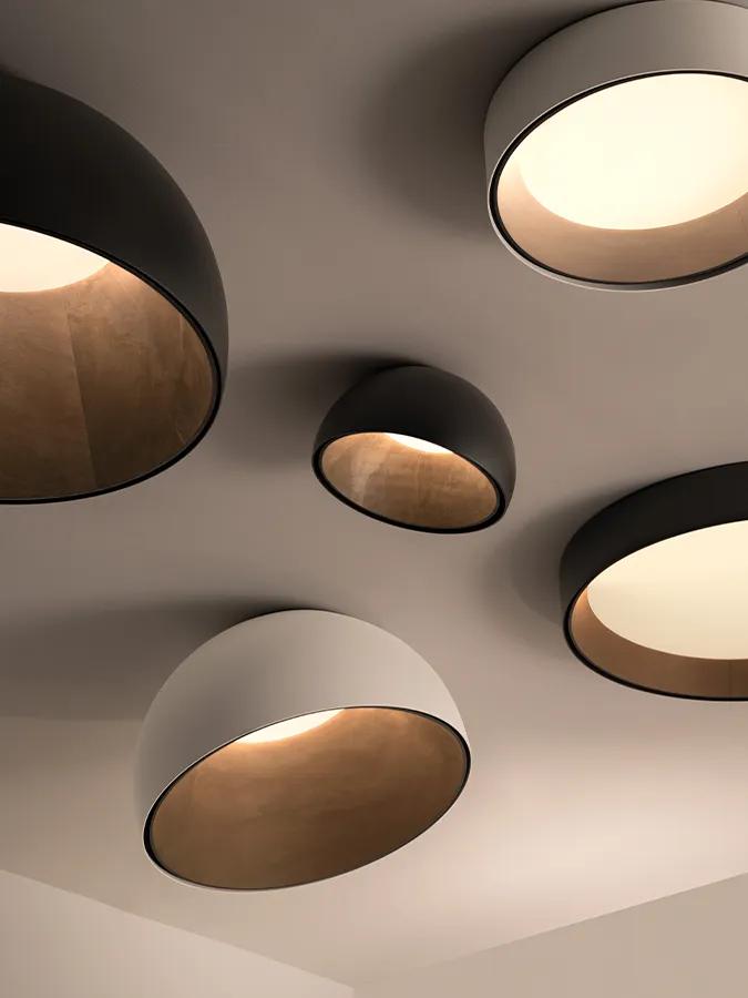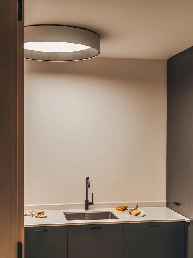 Duo Petra provides general ambient lighting, ideal for a minimalist and spacious interior. Designed specifically for rooms with low ceilings where a pendant luminaire is not suitable, its satin diffuser radiates a soft, diffuse light downwards.
