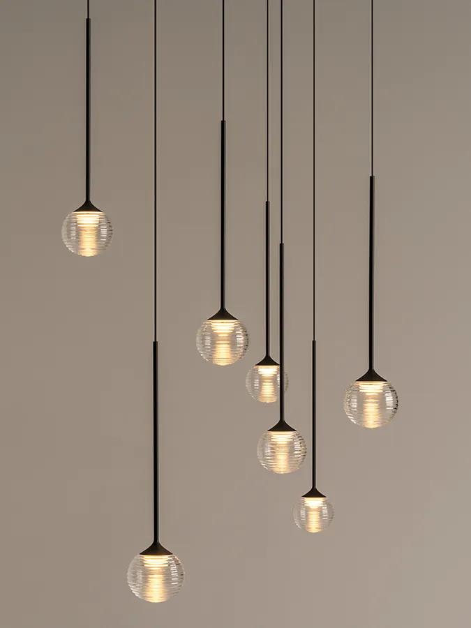 Its mouth-blown glass spheres, suspended in the air, evoke luminous constellations that lend a poetic and sophisticated touch. This collection offers a versatile solution for designing tailored atmospheres, adapting to both residential and public spaces.