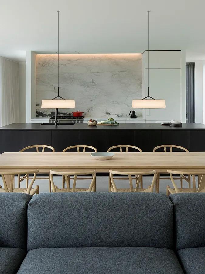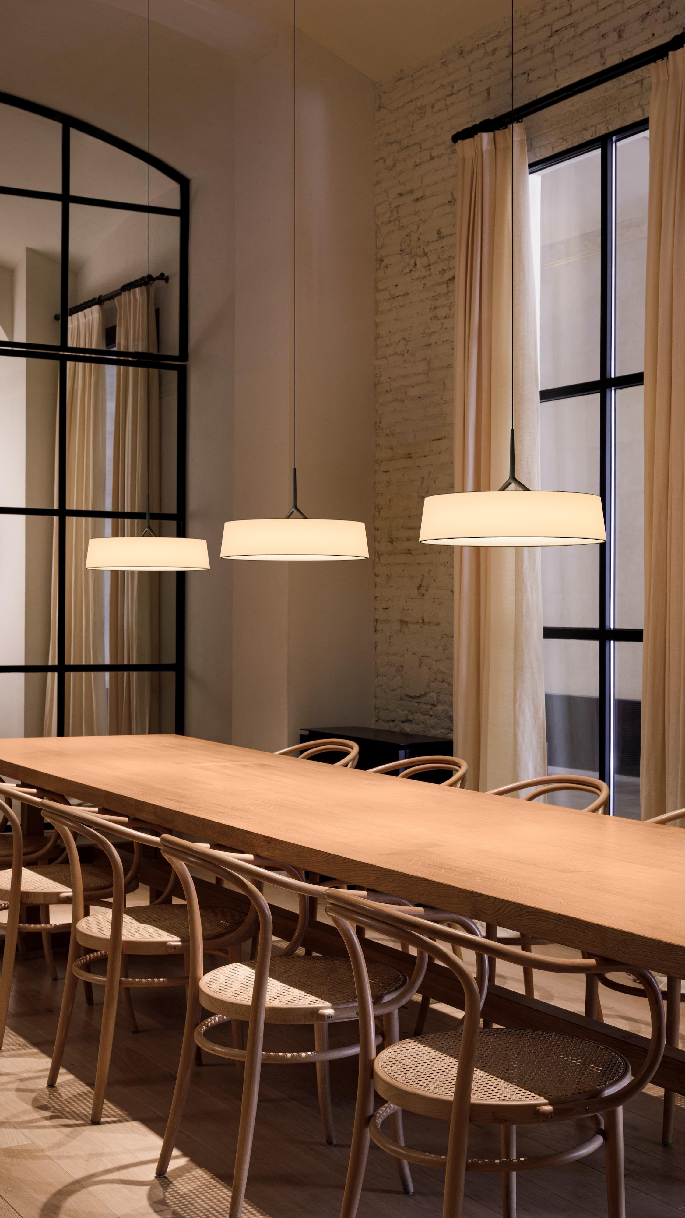 Suspended from a micro-thin cable that’s almost invisible to the eye, the DAMA pendants exhibit an ethereal quality, their graceful silhouette looming overhead like an alluring presence.