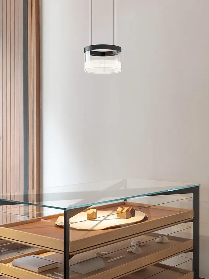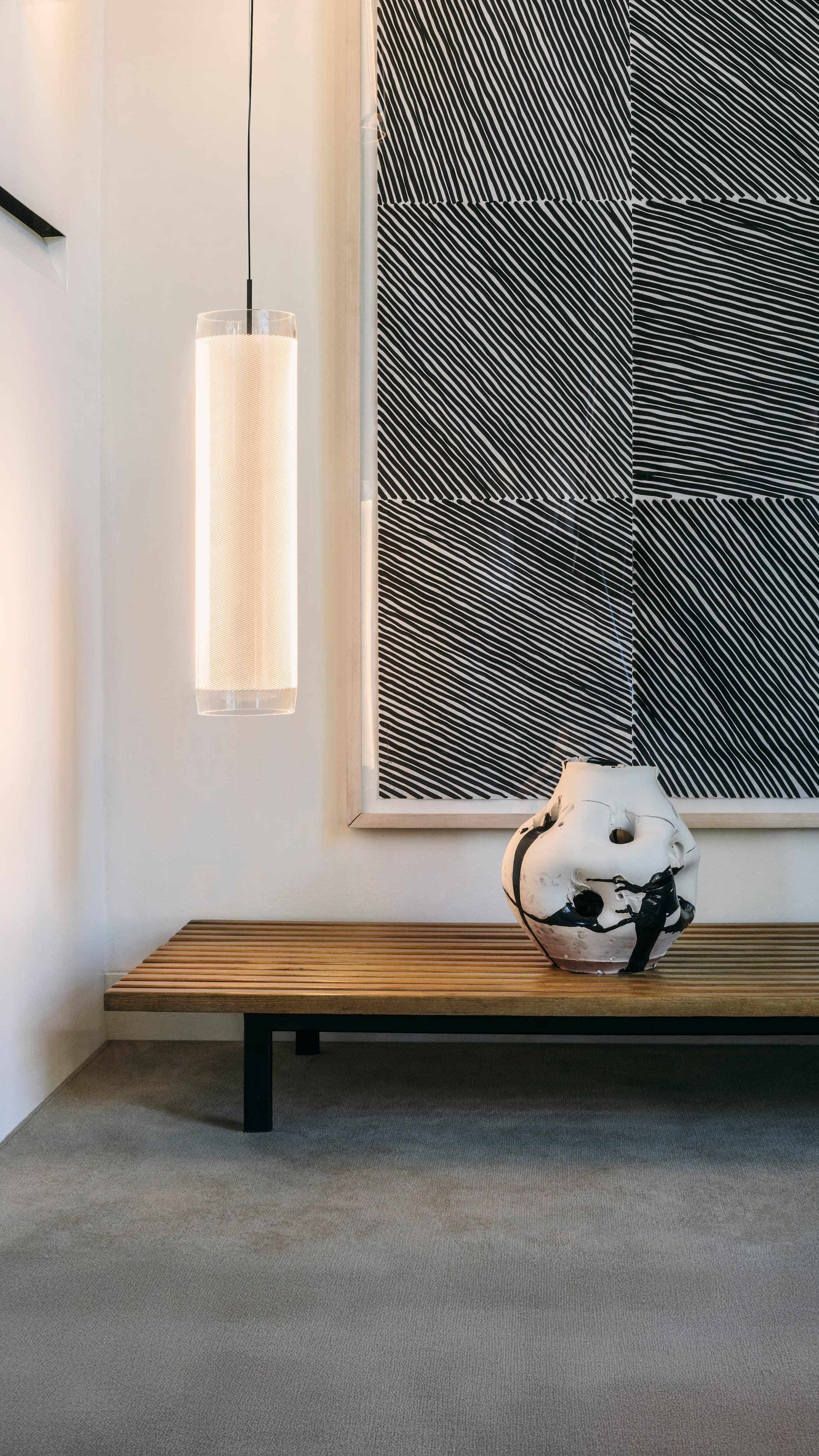 The pendant versions—available in vertical, horizontal, and circular compositions—are defined by their concealed light source and almost intangible presence. Suspended in space, they cast a precise and enveloping light that redefines the perception of volume. With a sober yet expressive design, they are versatile pieces suited to contemporary architecture.
