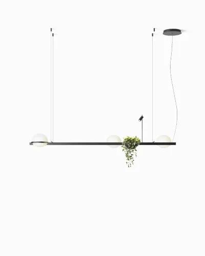 The Palma collection reimagines the connection between light and vegetation. Its opaline glass globes, connected by an aluminum ring, seem to float in space, integrating natural plants that evoke the beauty of hanging gardens. A unique design that illuminates and decorates with an organic and elegant touch.