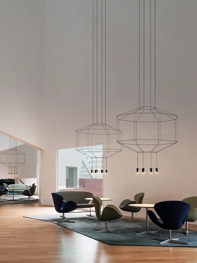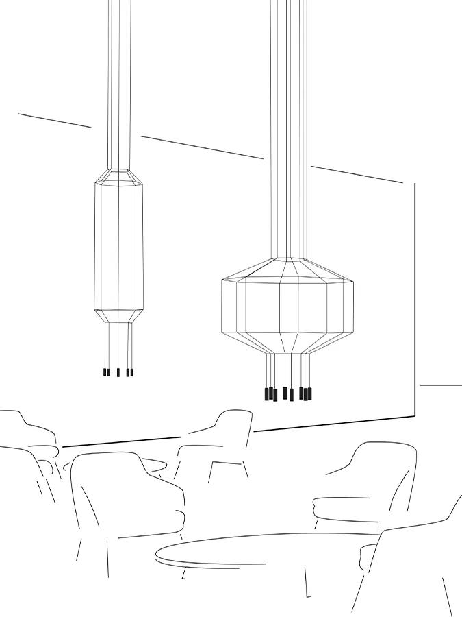 Wireflow reinterprets the traditional pendant through a contemporary aesthetic rooted in lightness and line.