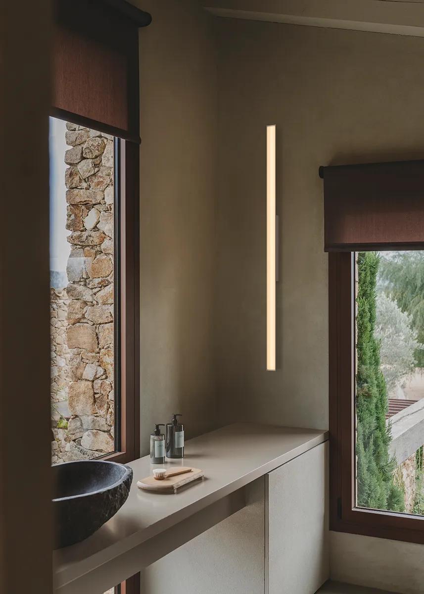 Refined in form, the Spa wall sconce offers a linear LED solution that allows complete compositional freedom to create a wide range of atmospheres—from intimate nooks designed for personal wellbeing to functional spaces focused on overall comfort.