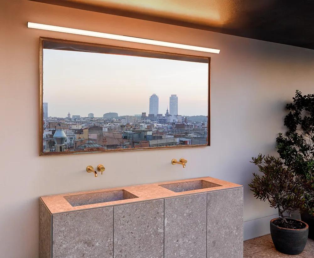 Spa is the ideal solution for bathroom mirrors or as a vanity light. Its dense light diffuses from the centre towards the edges, providing intense light without glare.